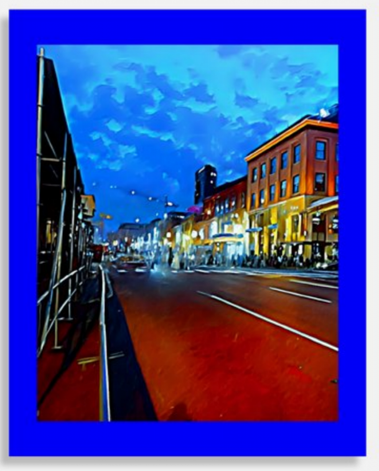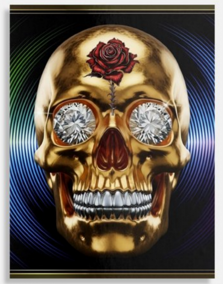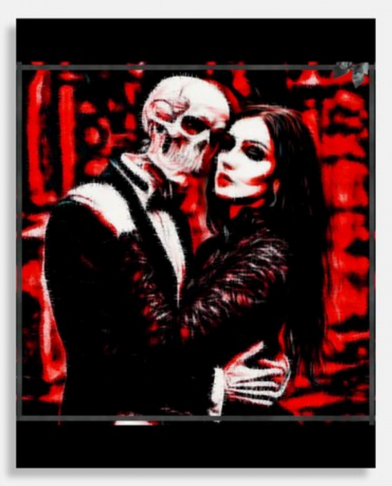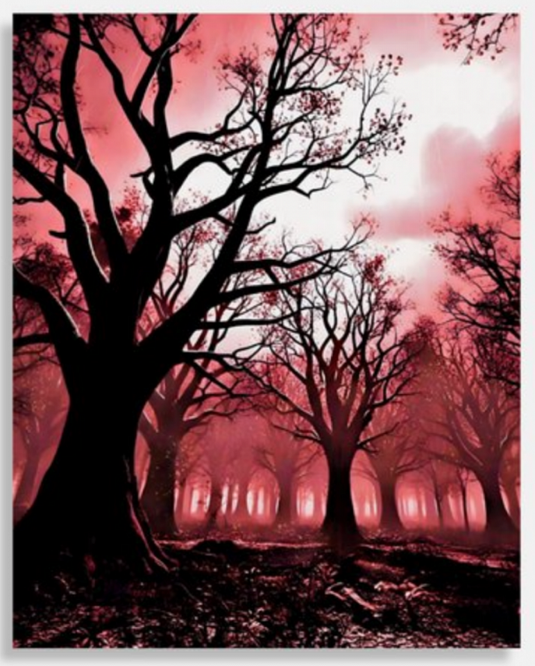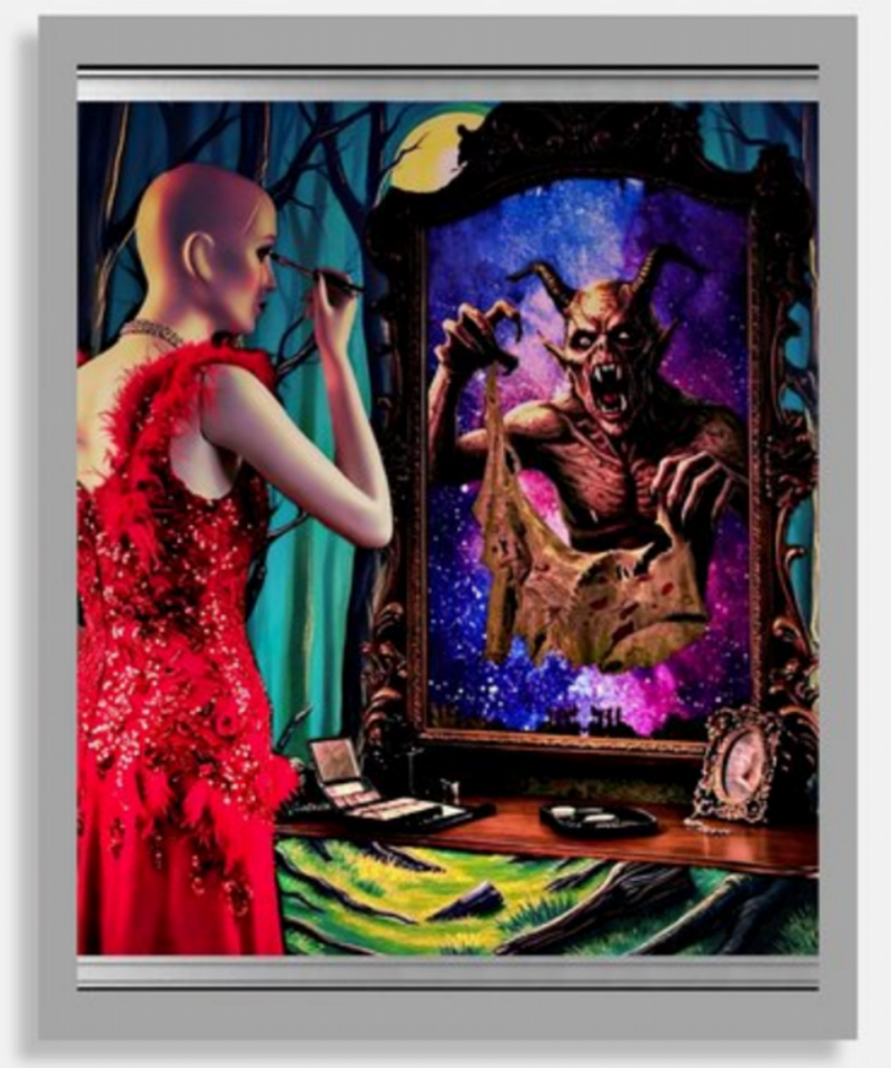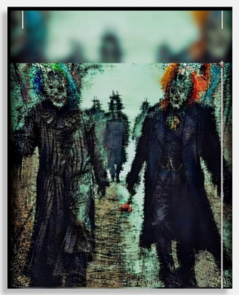 The overall impression is one of a surreal, high-contrast, and visually dynamic piece that blends elements of nature with futuristic or virtual reality themes. It evokes a sense of mystery and modern drama.